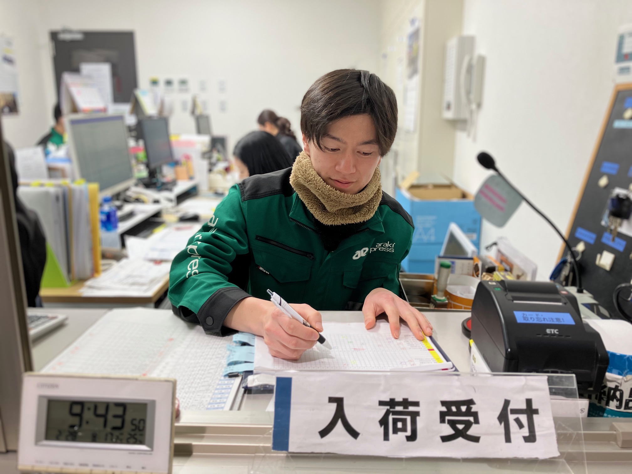 納品のために来たドライバーさんの受付対応を行います。