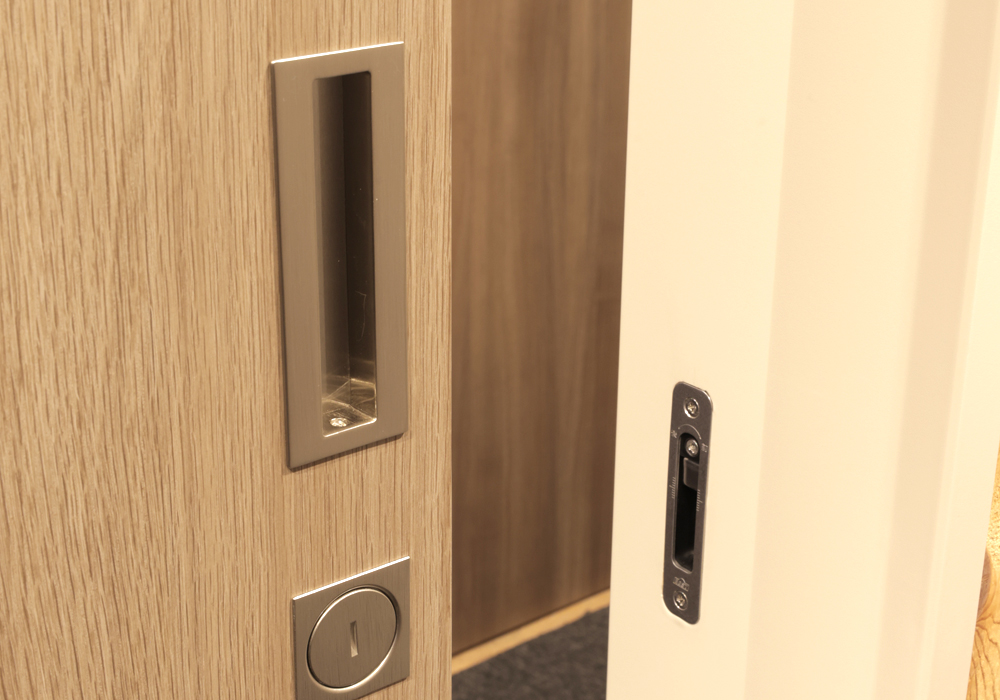 押して開けるタイプでも、スライド式でも、ほとんどの方が毎日ドアを使っているはずです。ですが、ドアはドアノブが無いと開けられないですよね。また、外部からの建物への侵入を防ぐには錠前が欠かせませんし、ドアが外れて倒れてきたり、人や壁にぶつかることを止めるのには蝶番と戸当り(ストッパー)が必要不可欠です。