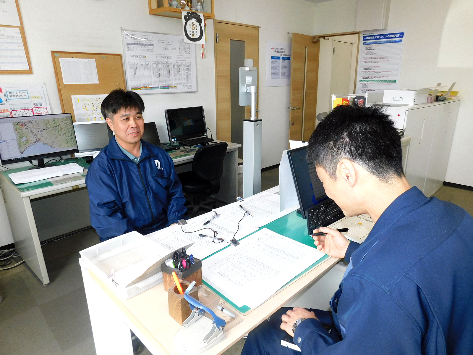 現在は運行管理として全体がスムーズに仕事が進むように管理を行っています。当社へ入社したばかりの頃はドライバーをしていました。3年ほど経験して、その後は社屋で構内作業やピッキングをしていました。色んな仕事を経験したことで全体の動きがわかるようになりました。今の仕事にも活かされています。 運送会社は24時間365日動いているので、誰かが単独でできる仕事ではありません。荷物を運ぶ人、仕分ける人、集荷をする人が協力して成り立っているので、次の人の事を考えて動かないと業務が止まってしまいます。私は運行管理という立場からできることで皆さんをサポートしています。