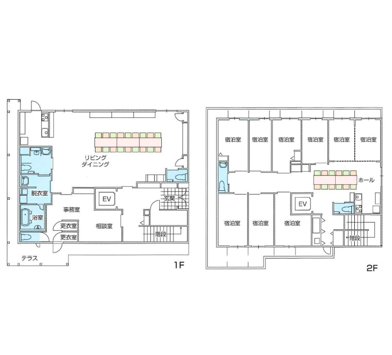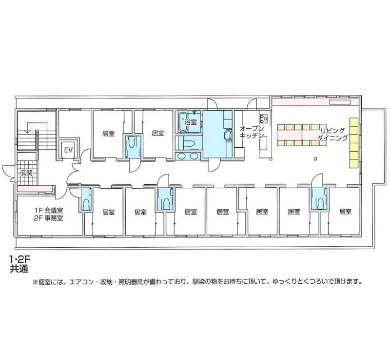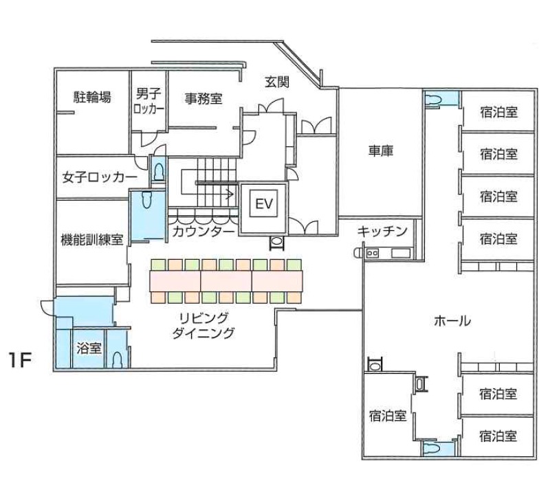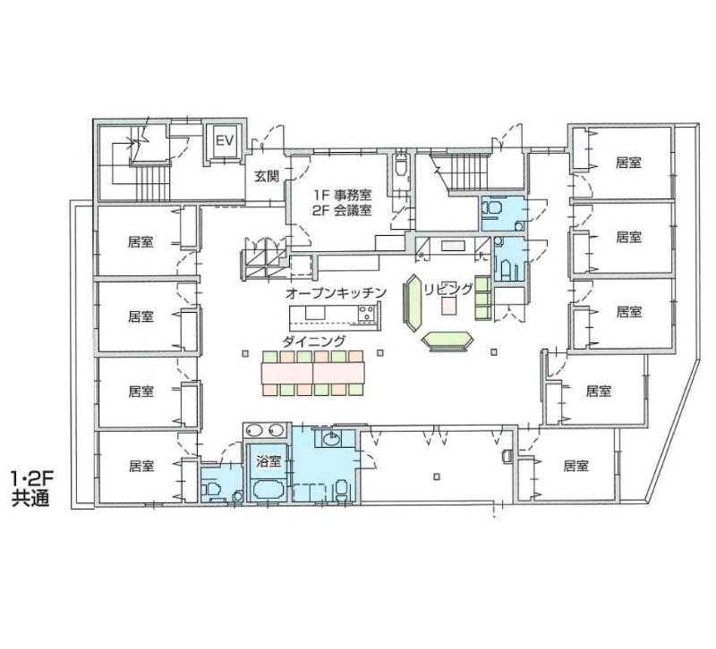 9LDKの間取りが特徴的な居住空間で、スタッフや他のご利用者様と家族のような繋がりを感じていただくことができます。