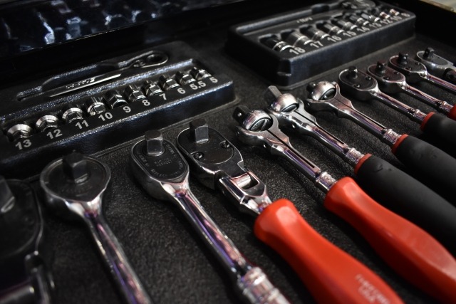 また、整備工場で使用するリフトや棚、工具なども