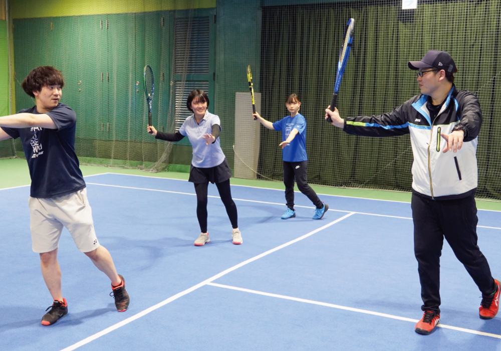 開放感と笑顔のある職場が特長のホリバインターナショナルテニス株式会社。「好き」を仕事にできる魅力的な職場であることに加えて、経験やスキルに関係なく意欲があれば若手から”成長”と”キャリアアップ”が叶います。スタッフのキャリアアップを支えるべく、充実した研修制度や資格取得支援制度なども整っており、個々の成長をしっかりとサポートし、長期的なキャリア形成を支援するための環境が整っています。ほかにも、フレックスタイム制の導入によって、ワークライフバランスを重視した柔軟な働き方も可能。安心して長く働いてほしいからこそ、社員のライフスタイルに合わせた柔軟な働き方を推奨し、仕事とプライベートの両立をサポートしています。