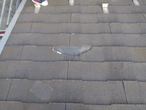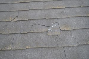 割れていなければ塗装で綺麗になるのですが、ここまで割れていると屋根カバー工事で補修するしかない状態でした。