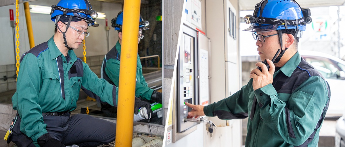 普段から多くの方がご利用されている「機械式駐車場」。 モーターや油圧機器等の機械装置で動いており、定期的なメンテナンスを行うことで安全に保っています。 当社は現在、東京都内を中心としたビルやマンションの立体駐車場のメンテナンスを担い、毎月100件近くの点検を行っています。経験豊富な技術者が、モーター・油圧機構・制御機器の異常や劣化、ネジが緩んでいないかなど、細かくチェックを行い、必要に応じて修理も担当しています。