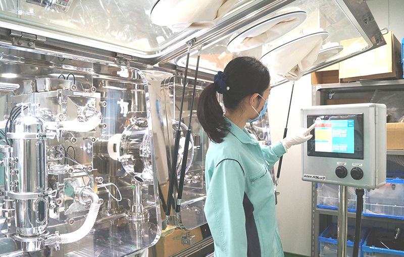 その後、開発品目は工場で実際に使用する製造機械を用いてスケールアップし、技術移管を行います。