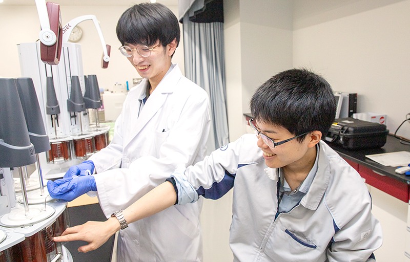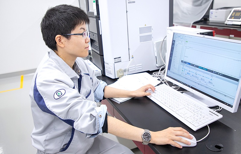 しかし、大学で学んだ知識と職場で必要なスキルが全く違っても、心配することはありません。実際に私もはじめは一部分の業務への理解しかしておらず、医薬品の取り扱いから試験操作、機器の使い方まで全て一からのスタートでしたが、現在では新入社員への教育や、分析の判断ができる立場になれました。大切なのは、先輩からの言葉をきちんと受け入れながらも、自分で物事を考えながら成長を目指していくこと。最初は、不安に感じるかもしれませんが、アドバイスを活かして努力をし続ければ一人前になれると思います。
