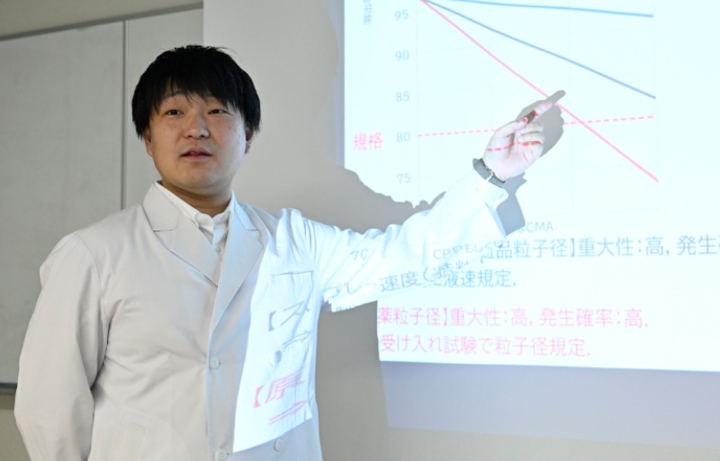 製剤研究部は他部署や他社と関わる機会が比較的多いため、プレゼン能力があると役に立ちます。実験をする上では論理的思考力ももちろん大切です。これらは普段みなさんが行っている実験の中でも身につくスキルだと思うので、ぜひ学生時代から養ってほしいと思います。