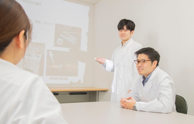 私個人としては、数年前にグループリーダーに選任されてから開発品目とメンバーのマネジメントを行っています。自分で手を動かして実験を行うことは少なくなり、製品の規格や試験方法、品質管理の方法をメンバーとディスカッションすることで研究を進めています。
