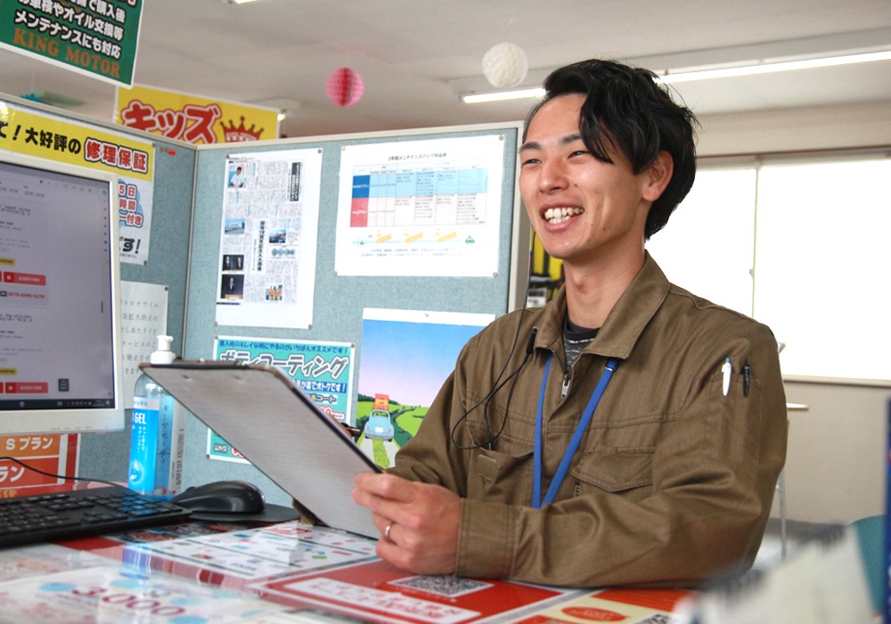 前職では資源回収の仕事をしていました。その際、お客様からの「いつもありがとうね~」といった些細なコミュニケーションが嬉しかったので、お客様と関われるような仕事がしたいと思うように。プラスでもともと好きだった車にも携わりたいという想いで、今の仕事へ転職しました。車販売会社の中でもこの会社を選んだのは、未経験でも歓迎してくれていた点や働きやすそうな雰囲気から。ここでならイチから学べそうだと感じ、入社を決めましたね。