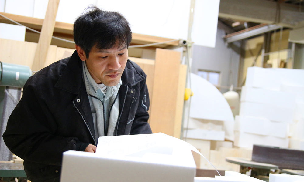そうですね。入社する前に工場を見させてもらった段階で、ちょうどでかいタイプの木型を手で作っているのを見ることができたんです。こんなに大きなものを手でやるのはすごく苦労するだろうなと思いつつ、その分やりがいがありそうだなと感じ、「できれば手の方をやらせてもらいたいんですけど」って伝えました。実際に自分でどういう風に作るかを考えて、それがどんどんカタチになり最終的に品物ができたときには「やっと作り上げたんだな」という達成感を感じます。