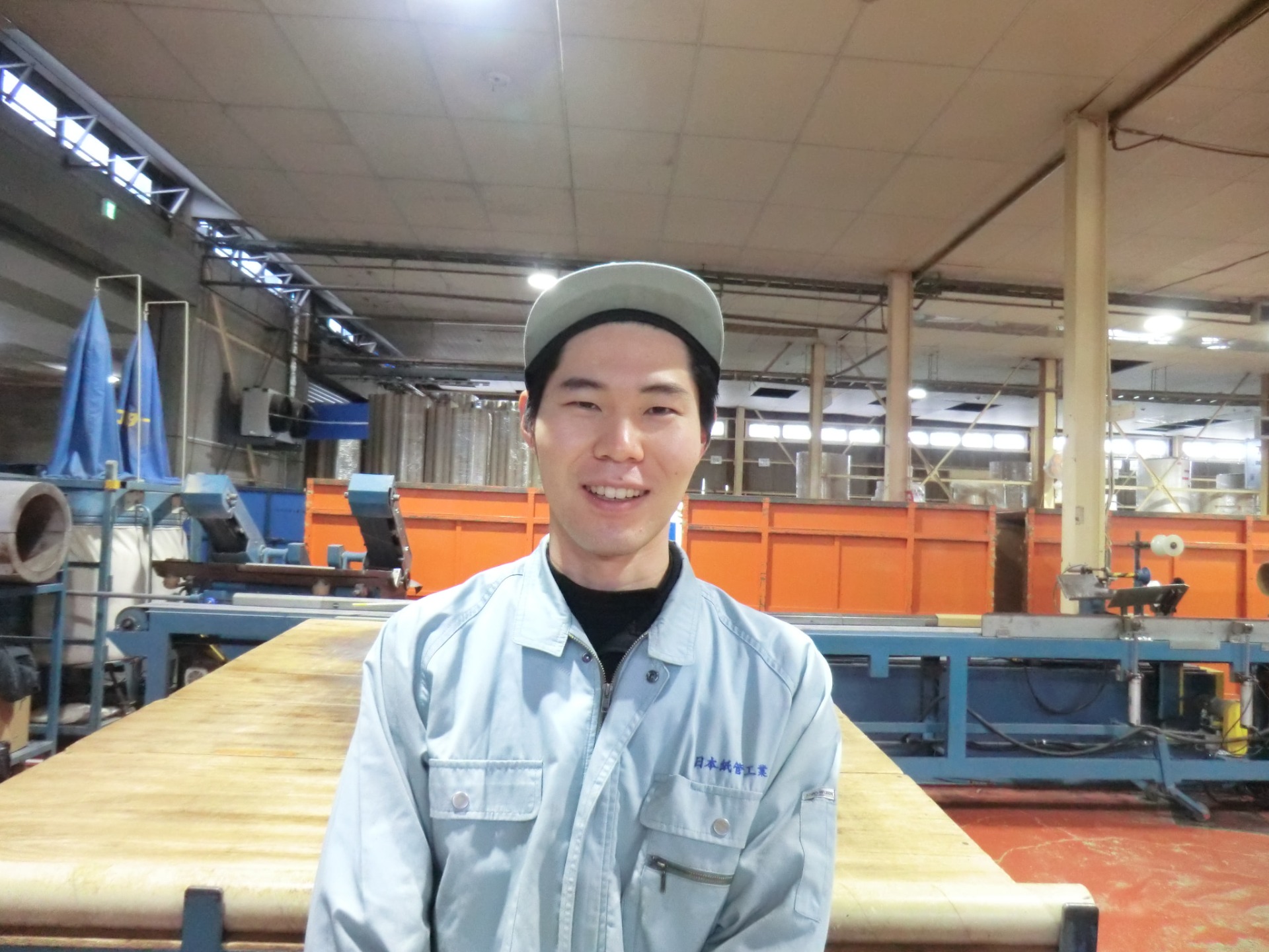 1月からはスパイラル製管の部署で、色々な経験を積んでいます。その前は「仕上げ」の工程を担当していて、ハイコアーという機械を使って紙管の表面をつるつるにする作業をしていました。