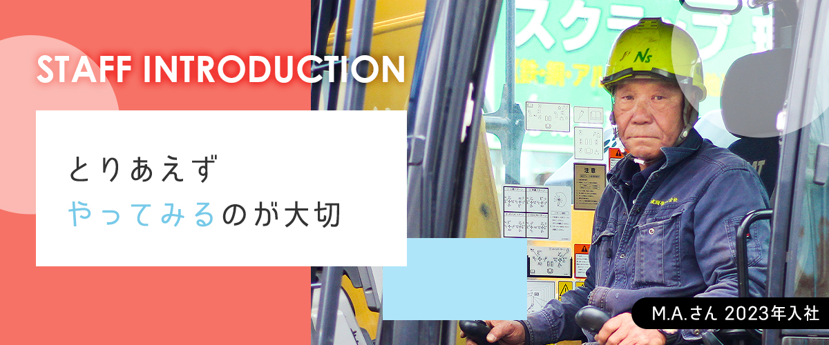 前は別の会社で配管工事をしていました。ちょうど60歳の時に辞めて、そんな時に高校生のときから友達だったここの代表に「手伝ってほしい」と声をかけられて。もともと同じような仕事をしていたから、フォークリフトとかの機械操作にも慣れていたし、とくに問題なく仕事はできましたね。今やっているのは、鋼材を切ったり長さを調整したり、基本的に構内での作業が中心。製品を造るのではなくて、ぶっ壊す仕事だから気は楽ですよ。
