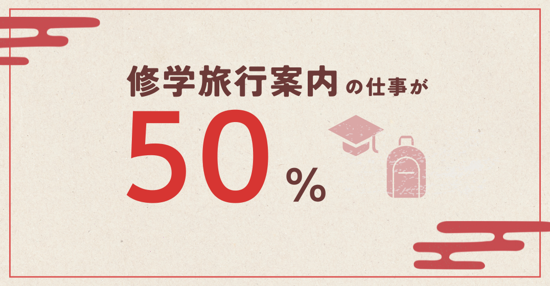 京都には毎年、多くの修学旅行生が訪れます。以前は大型バスで移動し、バスガイドが案内するスタイルが主流でした。しかし現在はワゴン車両にグループ単位で分乗し、学生たちが計画したコースを案内するスタイルが主流に! 毎年来られる学校が多く、継続性の高い仕事を多く受注。堅実な営業スタイルで、安定した収入を得られます。 シーズンには連日修学旅行の案内があり、ワゴンカーでご案内する仕事が年間の約半分!修学旅行生の最高の笑顔が、この上ないやりがいです!
