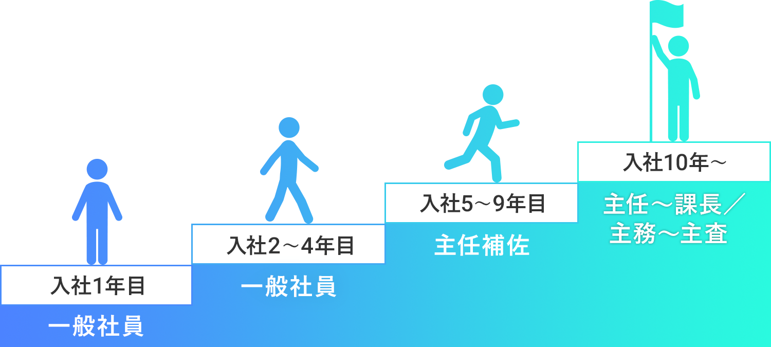 5年~10年 | 設計部門【昇進】 | 業務内容がより専門的なものとなる。 業務を進める上で重要なポジションとなる。 チームの管理やマネジメントに携わる機会が増える。 後輩を育てる役割も担う。 ※主任補佐/副チーム長 |