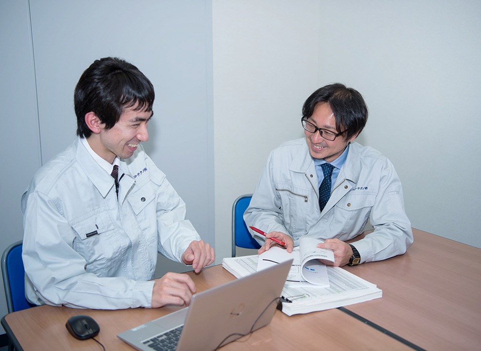 10:00 | 作業 | ▼チーム員 設計担当、製図(CAD)担当、チェック担当など作業を分担して行います。 必要な図面や情報を整理し、配置検討や形状検討などを重ねて図面作成していきます。 3Dモデルが活躍する機会も増えてきました。 ▼チームリーダー(営業・打ち合わせ) お客様のご状況について情報収集し、ニーズがどこにあるかを考えます。 仕事の依頼が来たら、お客様と仕事内容、納期、金額などの仕様調整を行います。 |