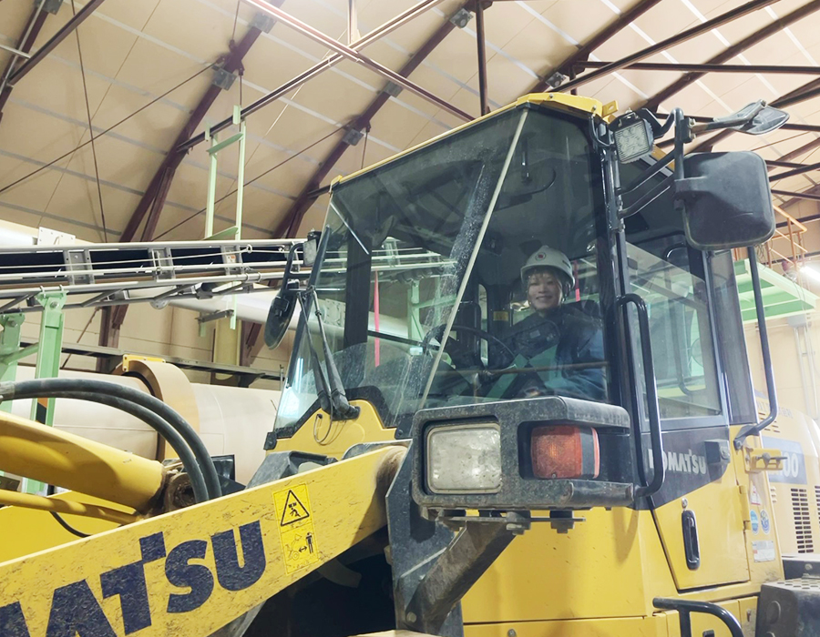 現在は厚真工場で、製造の仕事をしています。ホイールローダーに乗って原料を運んだりするので、どちらかというと技術職寄りの製造ですね。前職はコンビニでアルバイトをしていましたが、福利厚生や勤務時間が安定せず、正社員として腰を据えて働きたいと思うようになりました。もともと体を動かすのが好きなので、デスクワークよりも動きのある仕事を探していたんです。