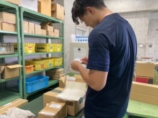 倉庫研修では、本社倉庫で荷受けや入荷商品を各営業担当の棚に振り分けするなど、