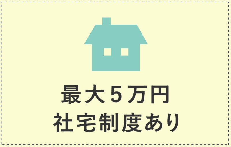 長く働いてほしい。という想いから、社宅制度(勤続1年以上)を設けています。配偶者有の場合で最大5万円。配偶者無の場合で最大3.5万円を負担!(※静岡:有3.5万円 無2.5万円)もちろん、敷金礼金も会社が負担します。少し贅沢な暮らしを実現しませんか!