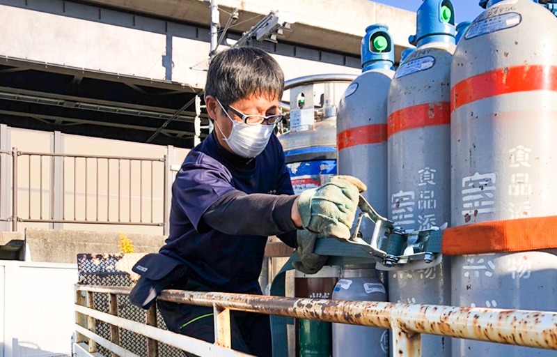 前職はガソリンスタンドスタッフとして勤務していました。その頃から、運送業務に興味を持っていたんです。ただ、「何でも運びます」というスタイルの運送業者が自分には不向きな気がして、その中で出会ったのが高圧ガスの運送に特化した“サクラ運送”でした。今現在も高圧ガスの運送に携われているので、ギャップもなく安心して業務に取り組めています。
