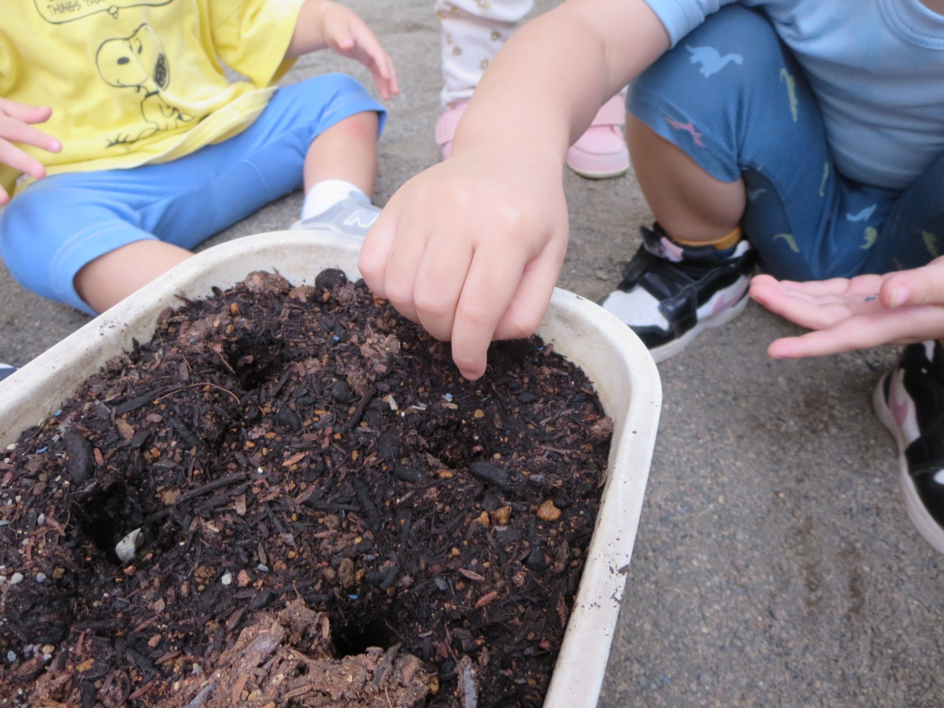 おおきくなぁれ♪ 2025-10-16 06:10:00 UTC 先日1歳児たんぽぽ組で、ミニ人参の種を蒔きました!小さな手の平にのせた種を不思議そうにジーーーッと見つめ、ぱらぱらと種まき完了です♪ 仕上げに『おいしくなぁれ!』のおまじない。みんなで見守って、かわいい人参の生長を楽しみにしたいと思います。