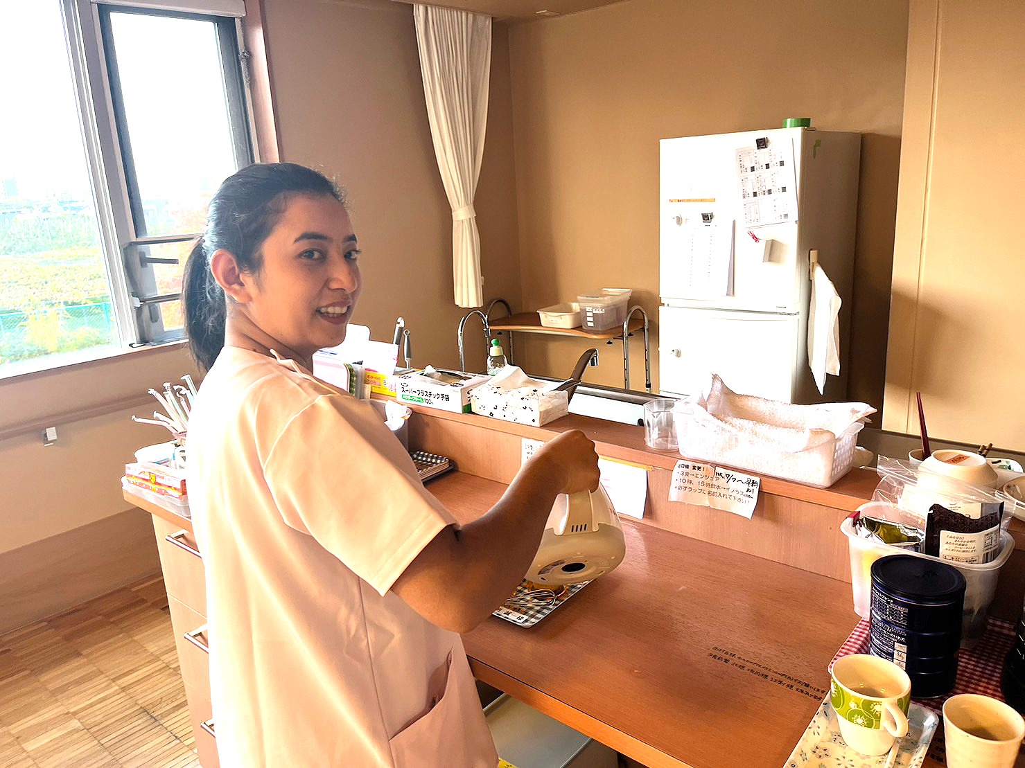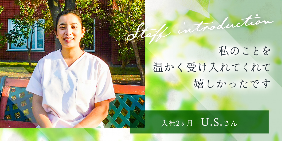 日本に来る前は色々と不安に感じていましたが、入社してからはその不安もなくなりました。日本語もまだ勉強中なので上手く伝わらない時もありますが、そんな私を皆さんが温かく受け入れてくれてとても嬉しかったです。 介護施設は色々ありますがやはり働く環境が一番大事だと思っているので、その点でシルバーハイツ札幌は最高だと思っています。庭も広くて自然もいっぱい。施設内も広々としていてとてもキレイです。何よりも優しい方ばかりで心が落ち着きます。
