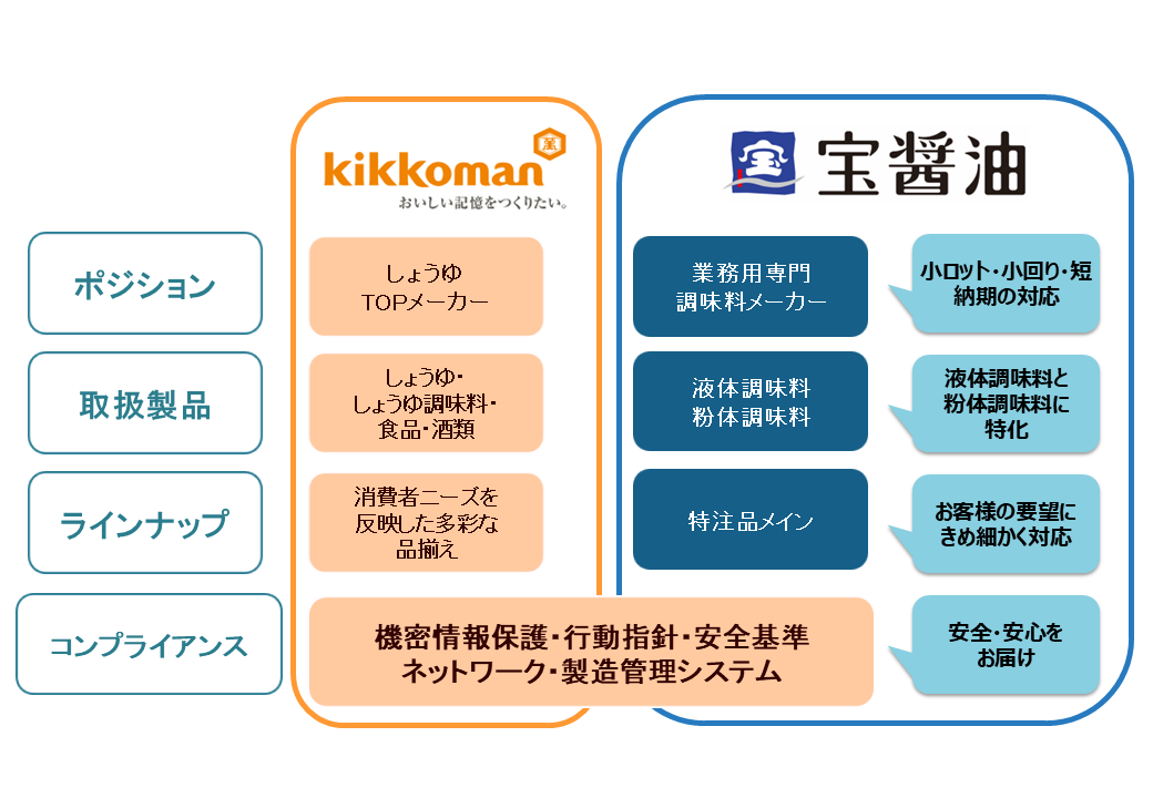 宝醤油はキッコーマングループの一員であり、業務用の調味料に特化したメーカーです。キッコーマンは醤油を主力とした総合食品メーカーとして広く知られていますが、宝醤油は家庭用ではなく特に業務用の調味料に力を入れています。