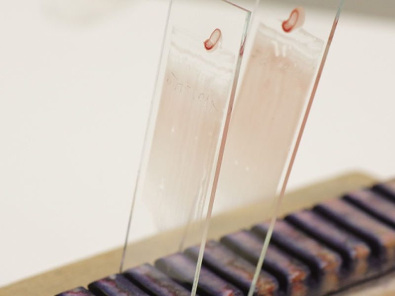 人や動物から検体を採取し、固定、包埋、薄切、染色、鏡検することで検体の状態を 判定します。当社では、病院や検査センターから検体をお預かりし、検査を行い 報告書を作成しております。日本全国から検体をお預かりしており、手術で摘出された臓器、内視鏡や生検で採取 した組織片を対象にした検査となります。
