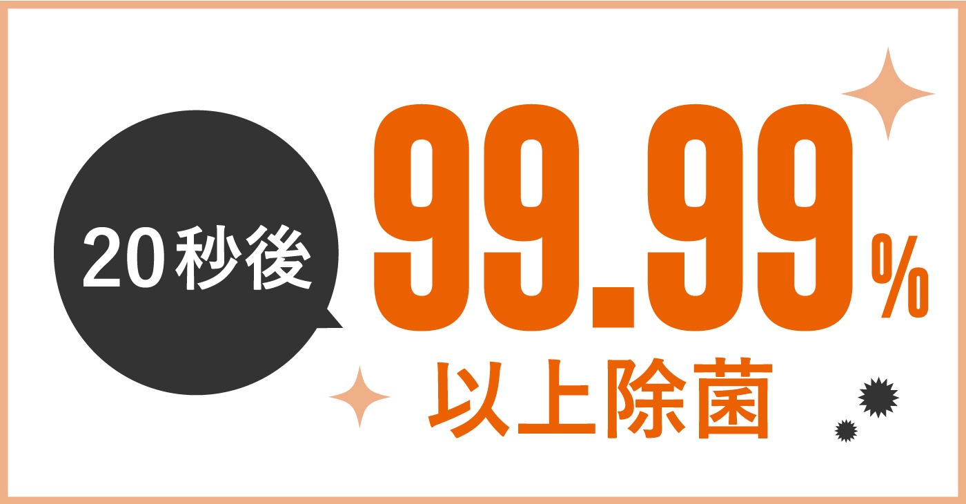 塩素濃度 | 100~200ppm | 100~200ppm | 10~50ppm | アルコール濃度60%以上 | ||||