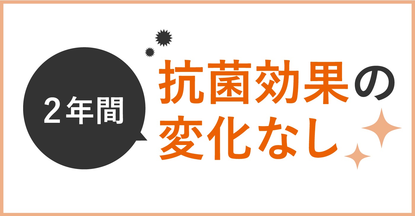 - 保管状態によりますが、2年間は”抗菌効果の変動なし”という結果を得ています。 (※保健所より認可取得済み) 紫外線に弱い商材のため、保管する際は太陽の光に当たらない様にしてください。