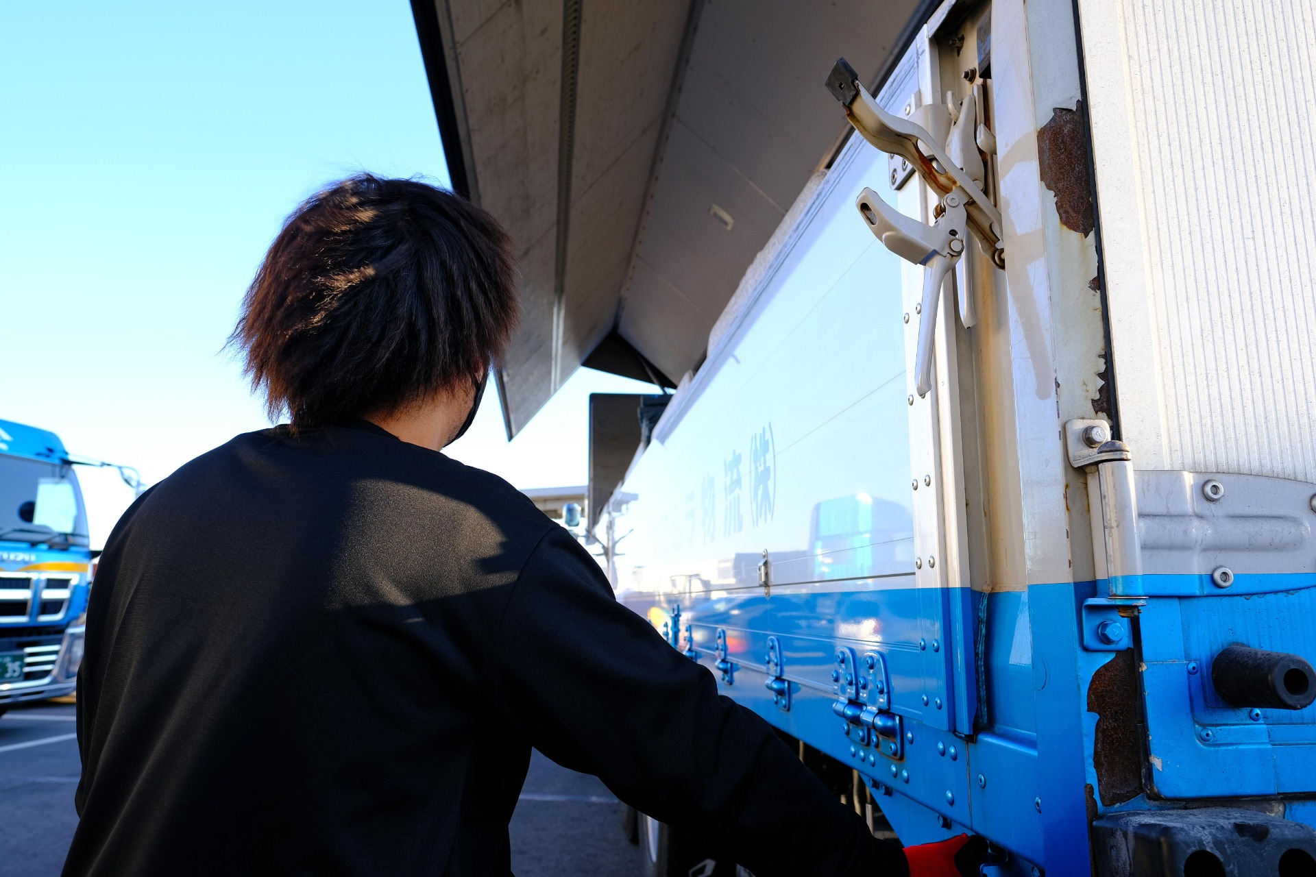 ▼出勤 ▼配車マンから指示を受け、会社を出発。最初の輸送先へ移動 ▼到着/配送物の荷下ろし ▼出発 ▼到着/配送物の積み込み ▼出発 | ※この業務の繰り返し ▼宵積み(注1)が完了後、帰社 (注1)朝一番に荷物を運ぶため、前日またはそれ以前に荷物を引き取り、あらかじめトラックに積み込みしておくこと。