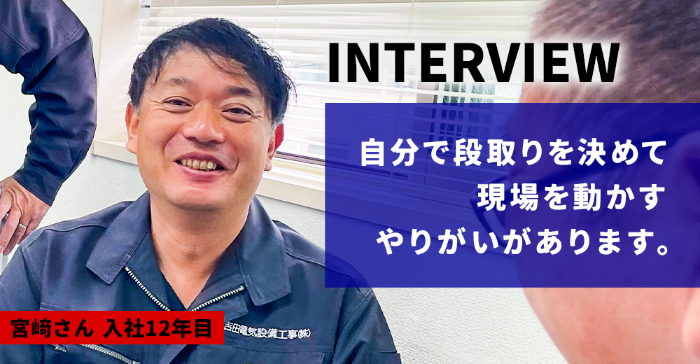 前職では車の部品製造をしていましたが、一通り仕事を覚えてしまうとマンネリ化してしまって、もっと違う仕事がしたいという思いから当社へ転職。当社との出会いは求人誌でしたが、大手ハウスメーカーと直接取引しているという安定した基盤があり、他の電気工事の会社にはない安心できる感じました。施工管理は初めてでしたが、これも何かの縁だと思いチャレンジしました。