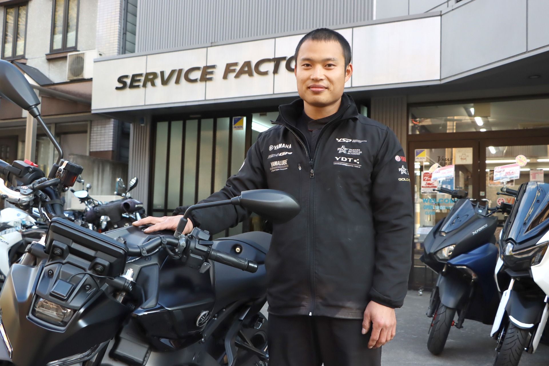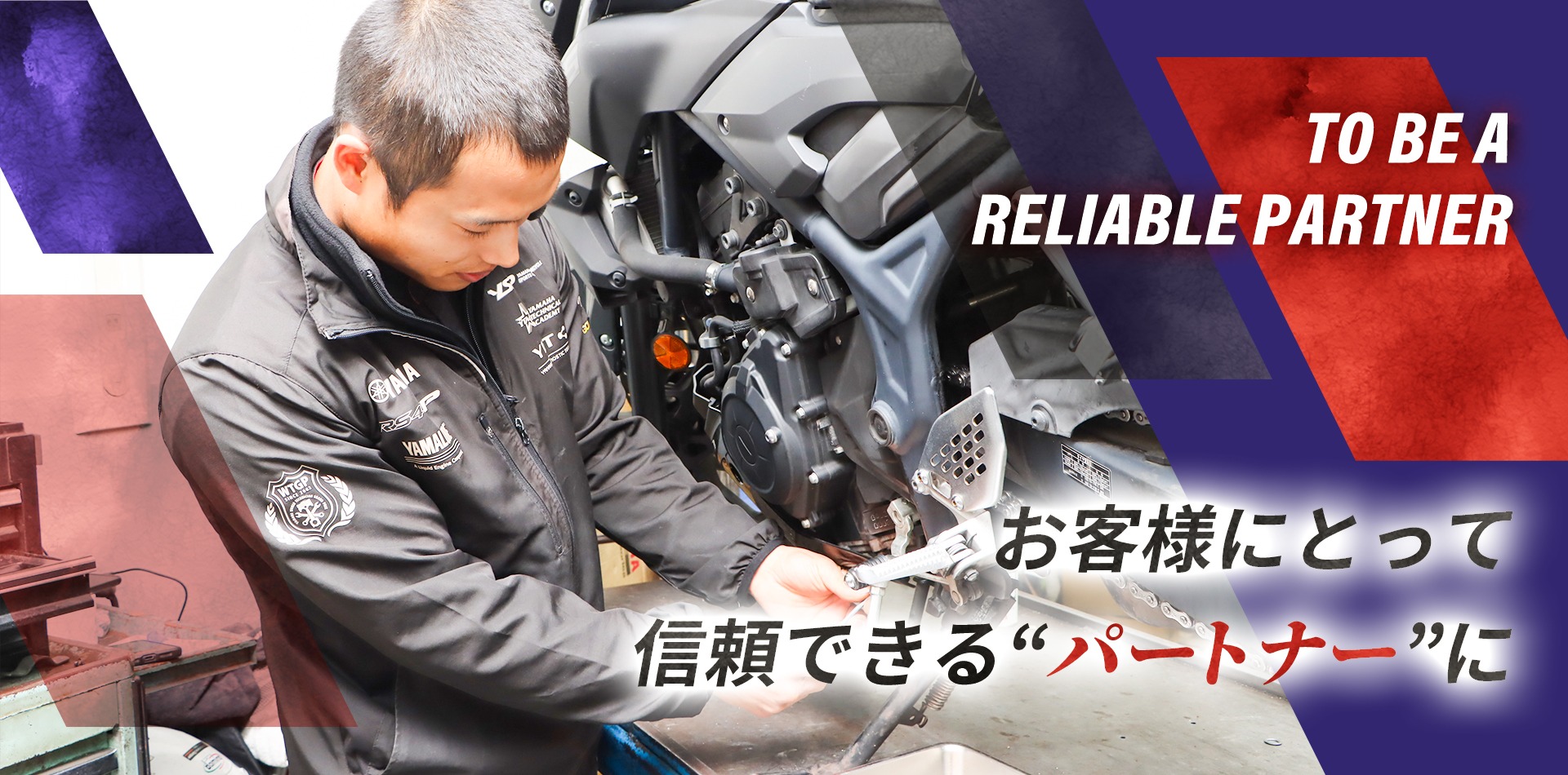 ヤマハの正規ディーラーとして、二輪車の販売やメンテナンス、