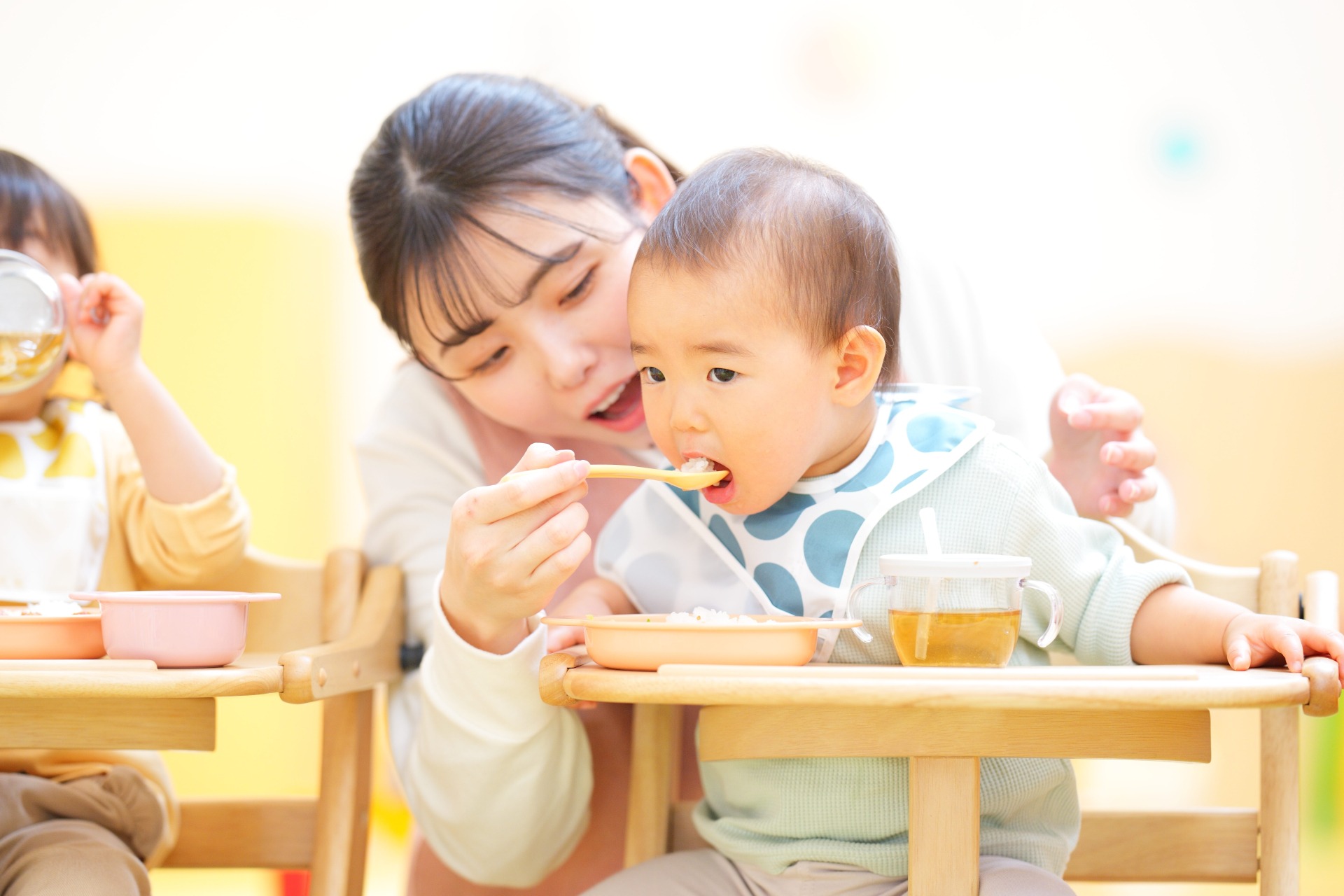 安全でおいしい給食の調理を担当し、子どもたちの成長を栄養面から支えます。担うのは、園児が楽しく食事をできる環境を整えること。普段の調理から行事の特別メニュー作り、衛生管理まで、食事の体験づくりを。